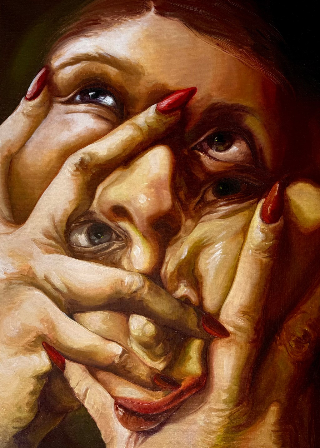 „Too many of me in one head”, 50 x 70 cm, oil on canvas, 2024, Weronika Tlałka