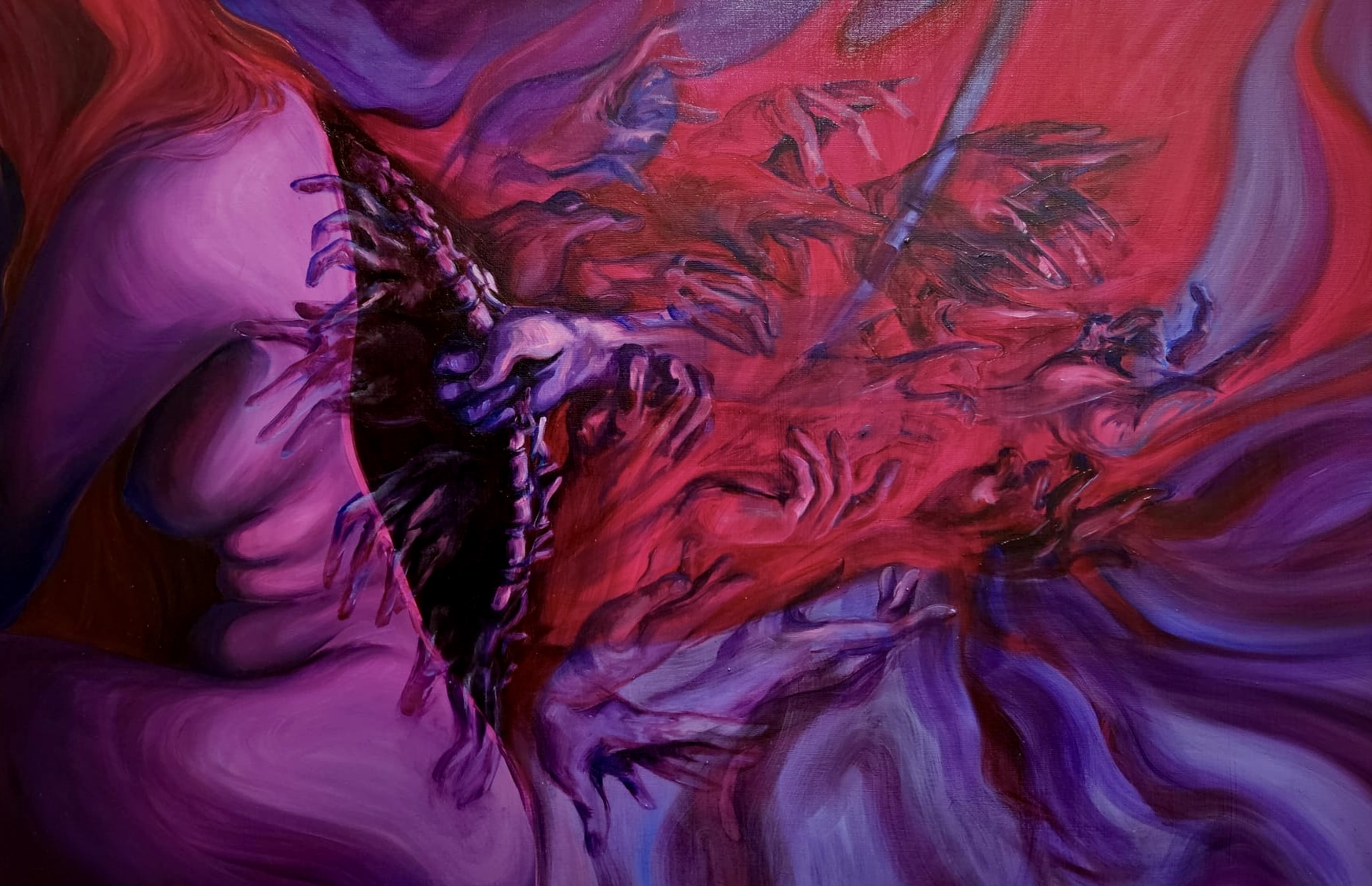 „Kogo dziś zobaczę w lustrze?” / „Who will I see in the mirror today?”„To tylko krzyk w głowie” / „it’s only a scream in My head” „Nie mogę się przebić” / „I can’t break through”„Za dużo mnie w jednej głowie” / „Too many of me in one head”„Codziennie o tym myślę” / „I think about it every day”„Nic nie widzę” / „I can’t see anything”„Zdejmij to ze mnie, proszę” / „Take it off me please”” Dotyk obłędu” / „A touch of madness”„Próbuję to przełknąć” / „I’m trying to swallow it”„Może nikt nie widział” / „Maybe no one saw”„Patrzę, ale to nie moje oczy’ / „I look, but these are not my eyes”„Przecież tu jestem” / „I’m here after all”„Niech się utopi, aby mogło wrócić do mnie czyste” / „Let it drown so that it can come back to me clean”Wystawa semestralna 2023/2024 / Semester exhibition 2023/2024Wystawa semestralna 2023/2024 / Semester exhibition 2023/2024„Żeby już nigdy nie wróciło” / „So that it never comes back” Studium wody I / Water study IStudium wody II / Water study IIStudium wody III / Water study III Studium wody IV / Water study IV Wystawa : VI Suwalski Salon Sztuki 2024 / Exhibition : VI Suwalski Salon Sztuki 2024Studium wody V / Water study VStudium wody VI / Water Study VIEvery pigeon that wakes me up at five in the morning on a SundayWystawa semestralna 2023/2024 / Semester exhibition 2023/2024„Gniazdo” / „Nest”Studium gołębia I / Study of the pigeon IStudium gołębia V / Study of the pigeon VStudium gołębia VI / Study of the pigeon VIStudium gołębia II / Study of the pigeon IIStudium gołębia III / Study of the pigeon IIIStudium gołębia IV / Study of the pigeon IV” W LESIE” I / „IN THE FOREST” I” W LESIE” II / „IN THE FOREST” II„Kiedyś wyrwą Cię z mych objęć” / „One day they will tear you from my arms”„To tylko moje cierpienia” / „These are just my sufferings”„Bitwa dowolnej głowy” / „Battle of any head”„To nie tylko moje cierpienia” / „It’s not just my suffering”„Odkąd mam dwie pary oczy, widzę więcej” / „Since I have two pairs of eyes, I see more”W pracowni ASP / in the Academy of Fine Arts studio„Diabcio”
